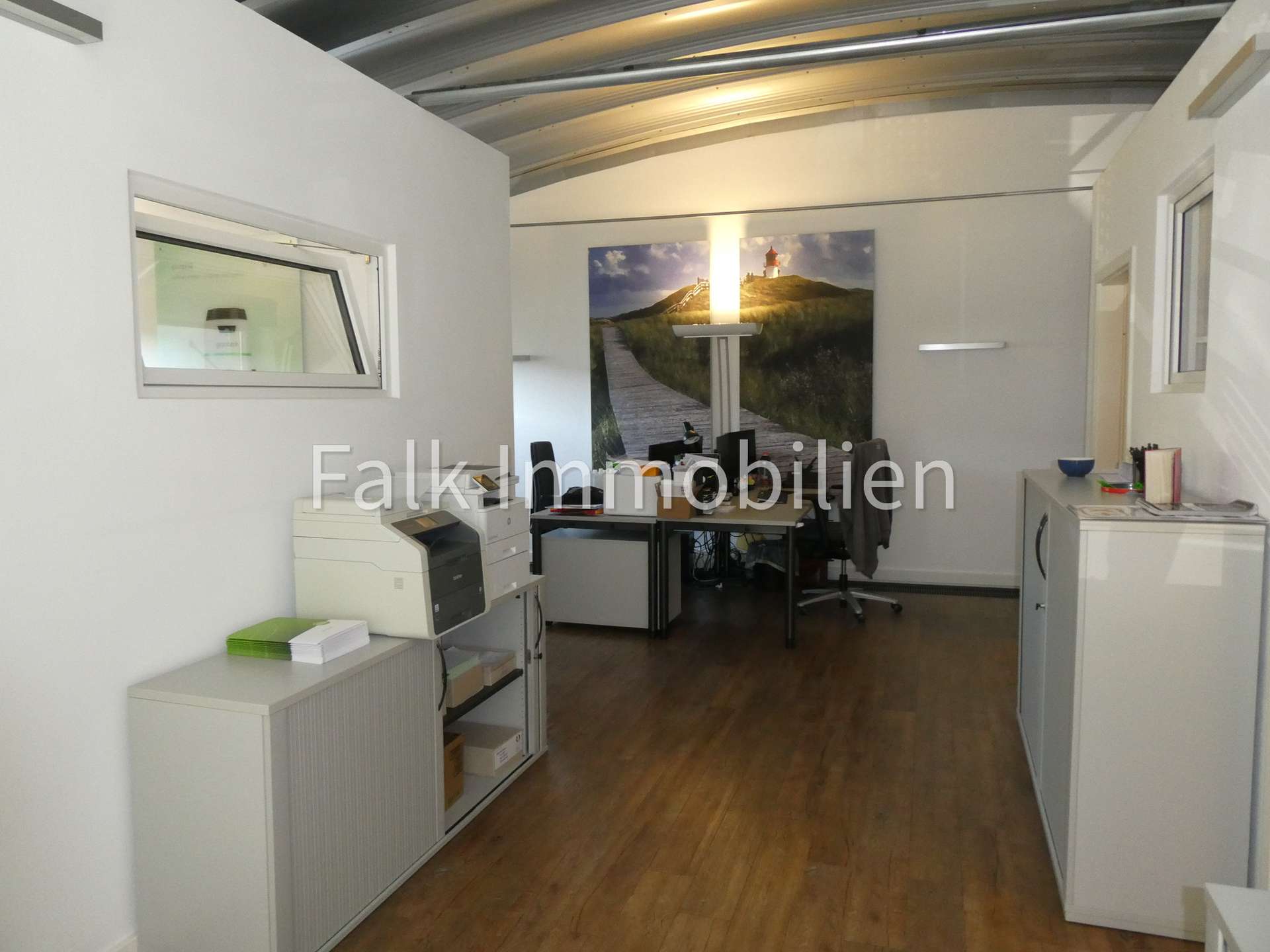 – Galerie mit 3 Büroboxen für 7 Arbeitsplätze, Tee-/Kaffebereich und Zugang zur Fluchttreppe ausgestattet