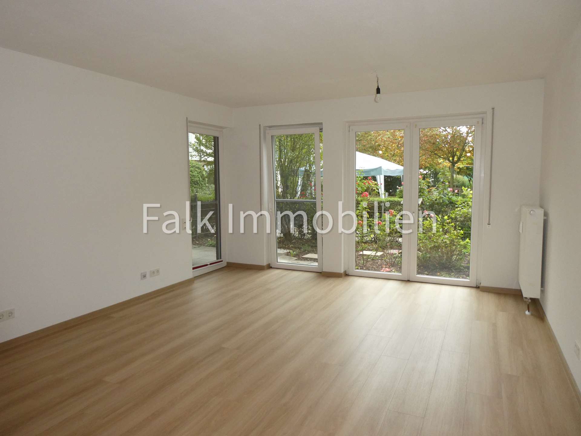 Auf ca. 57,84 m² Wohnfläche finden Sie Ihnen einen kleinen Flur welcher offen in den hellen Wohn-/Essbereich mit angrenzender Küche und bodentiefer Fensterfront übergeht, ein Schlafzimmer mit bodentiefen Fenstern sowie ein Tageslichtbad mit ebenerdiger Dusche und Waschmaschinenanschluss. Den Zugang zur Terrasse und den kleinen Garten bietet Ihnen sowohl das Wohn-/Esszimmer als auch das Schlafzimmer.