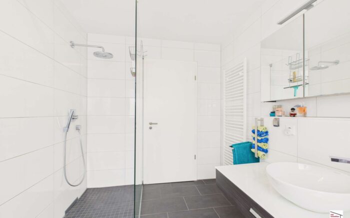 – Haus mit dem Nachbarhaus mit einer sogenannten „weißen Wanne“ gegen Grund- und Sickerwasser abgedichtet. (Diese Bauweise gilt als besonders langlebig und sicher.)