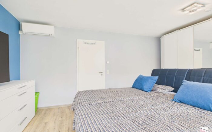 – Wohn-/Essbereich sowie Schlafzimmer mit einer Klimaanlage (Luft-Luft-Wärmepumpe), welche heizt und kühlt, ausgestattet